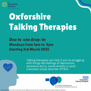 Oxfordshire Talking Therapies Oxfordshire Talking Therapies will be running a drop in session [...] Kelly2025-02-21T11:47:30+00:0021 February 2025| Read More